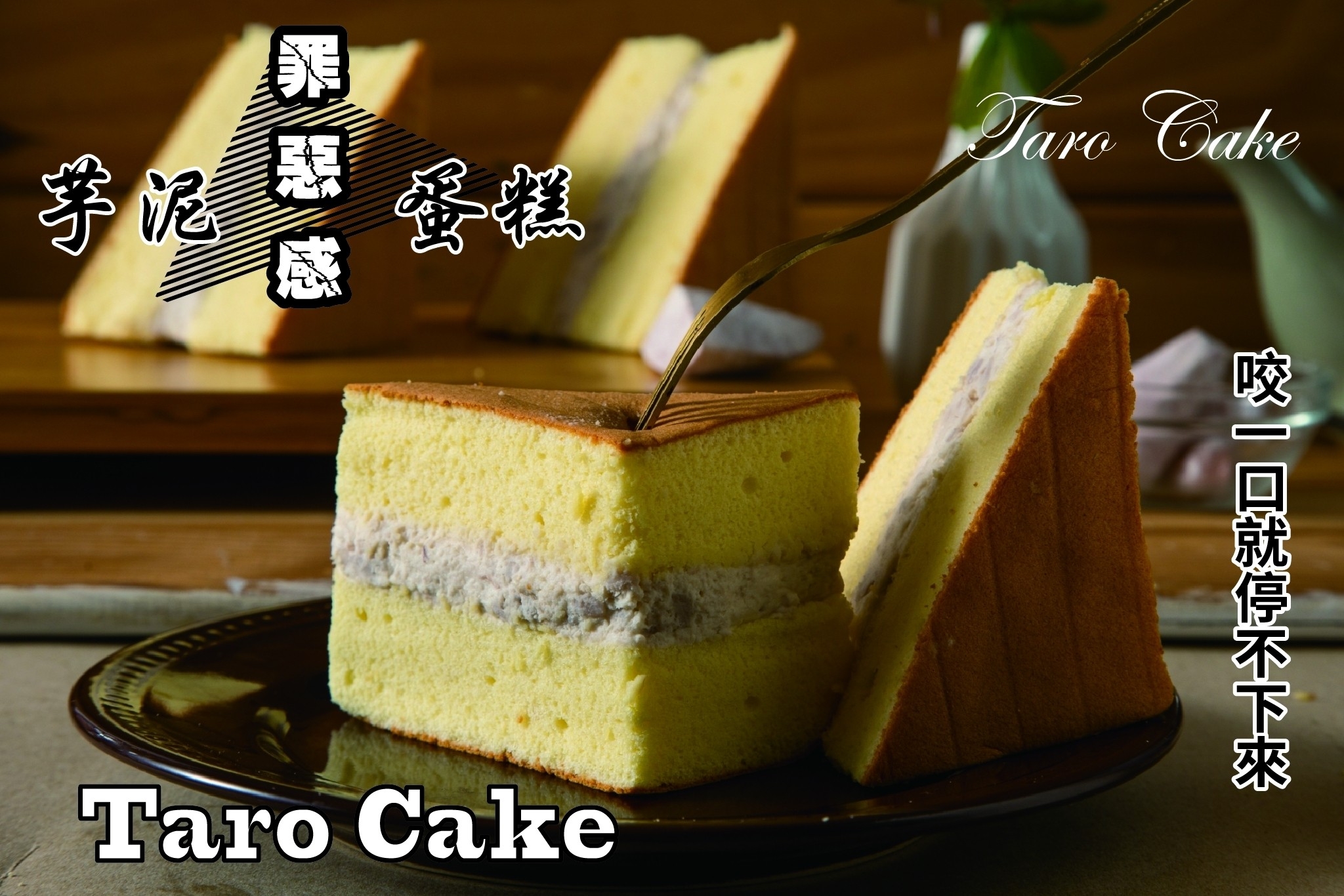 鬆軟綿密的海綿蛋糕夾著淡淡的紫色芋泥