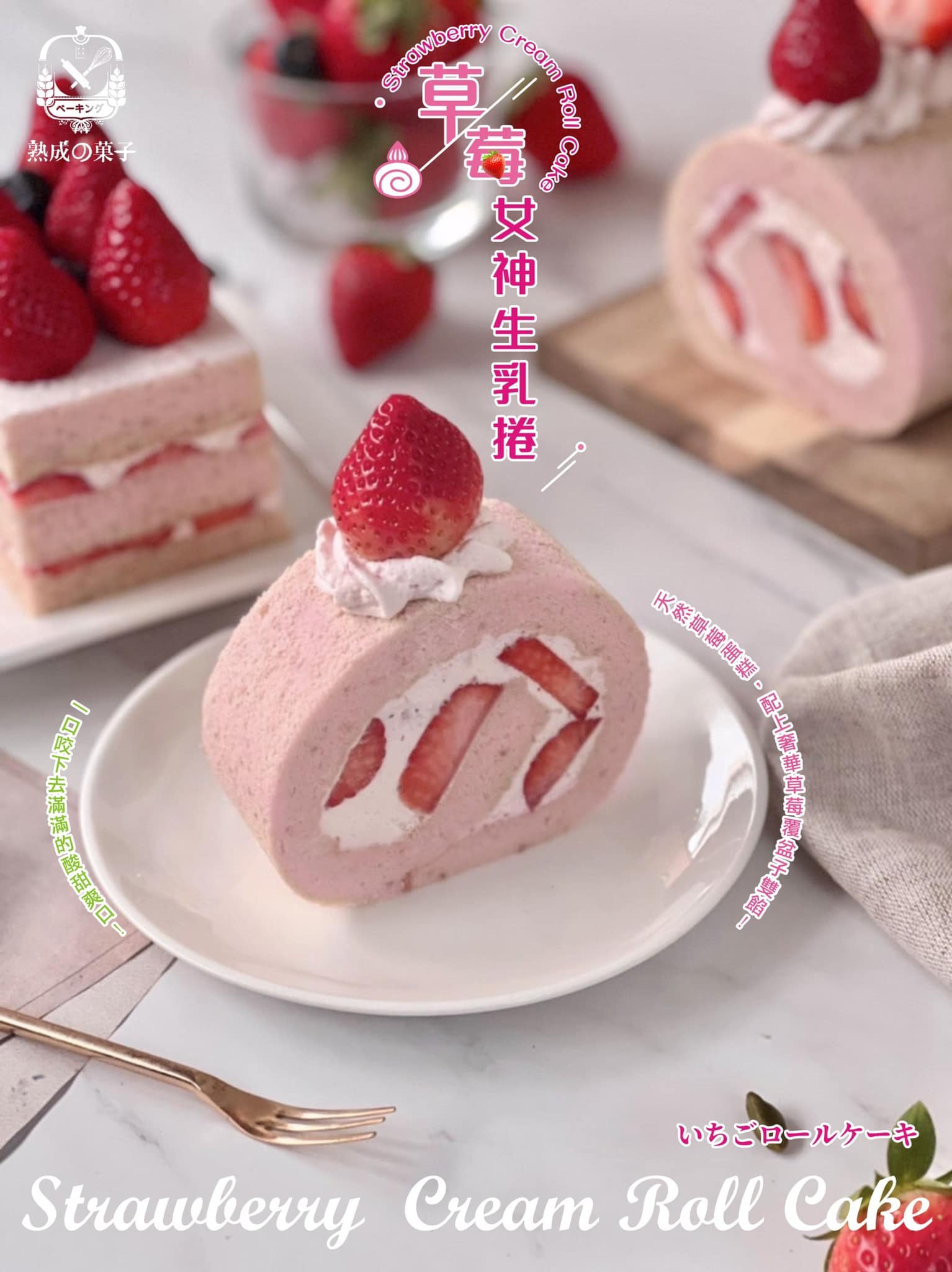 🍓一次四種經典口味:原味草莓生乳捲/網紅女神草莓卷/香濃草莓生乳捲/名媛草莓方形彌月蛋糕🍓