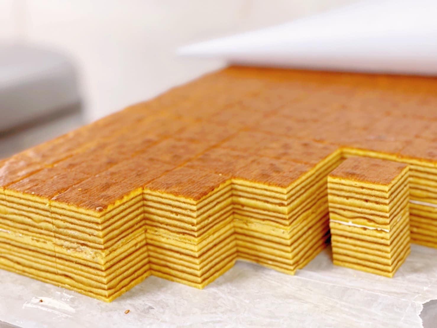 使用2款頂級奶油並添加主廚親自熬煮焦糖牛奶醬傳承荷蘭原汁原味重奶油烘焙技術,打造出金黃比例香Q濃郁的蛋糕香!