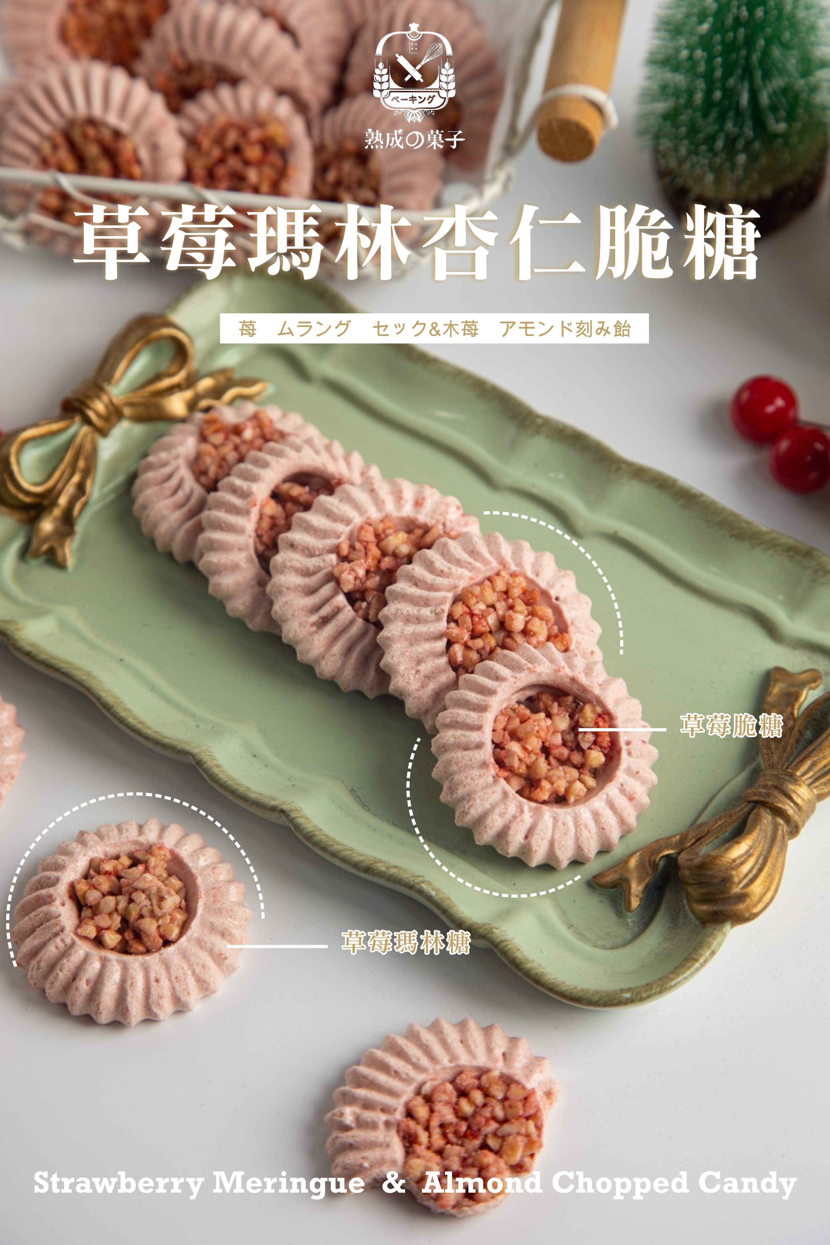 ✅將馬林糖與覆盆子杏仁脆糖結合的新產品,適合在新年禮盒上。