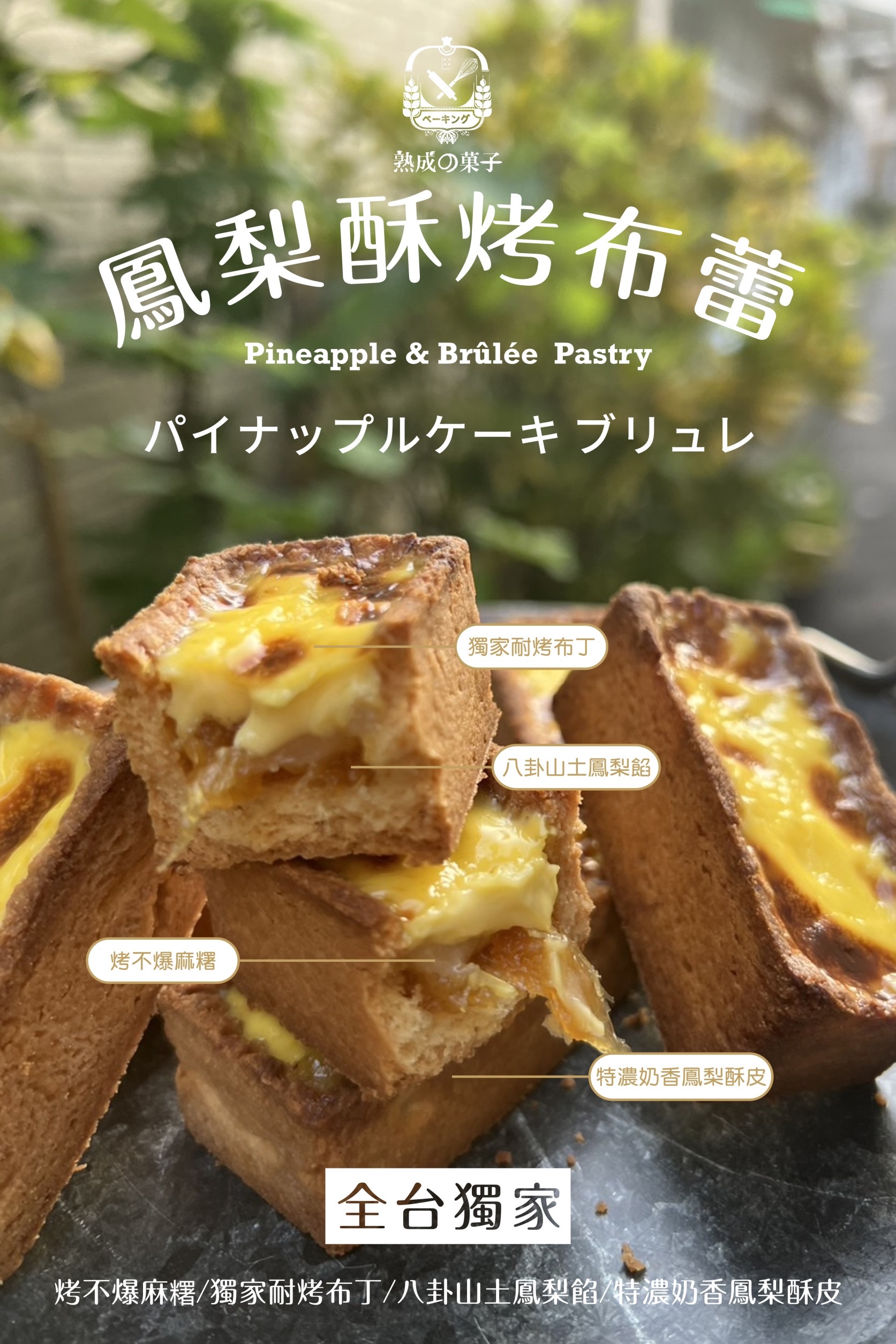 完全顛覆你的思維,濃醇香鳳梨酥皮,再搭配獨家🉑️耐烤烤布蕾,以及配上土鳳梨餡和麻糬,一口咬下前所未有的口感!
