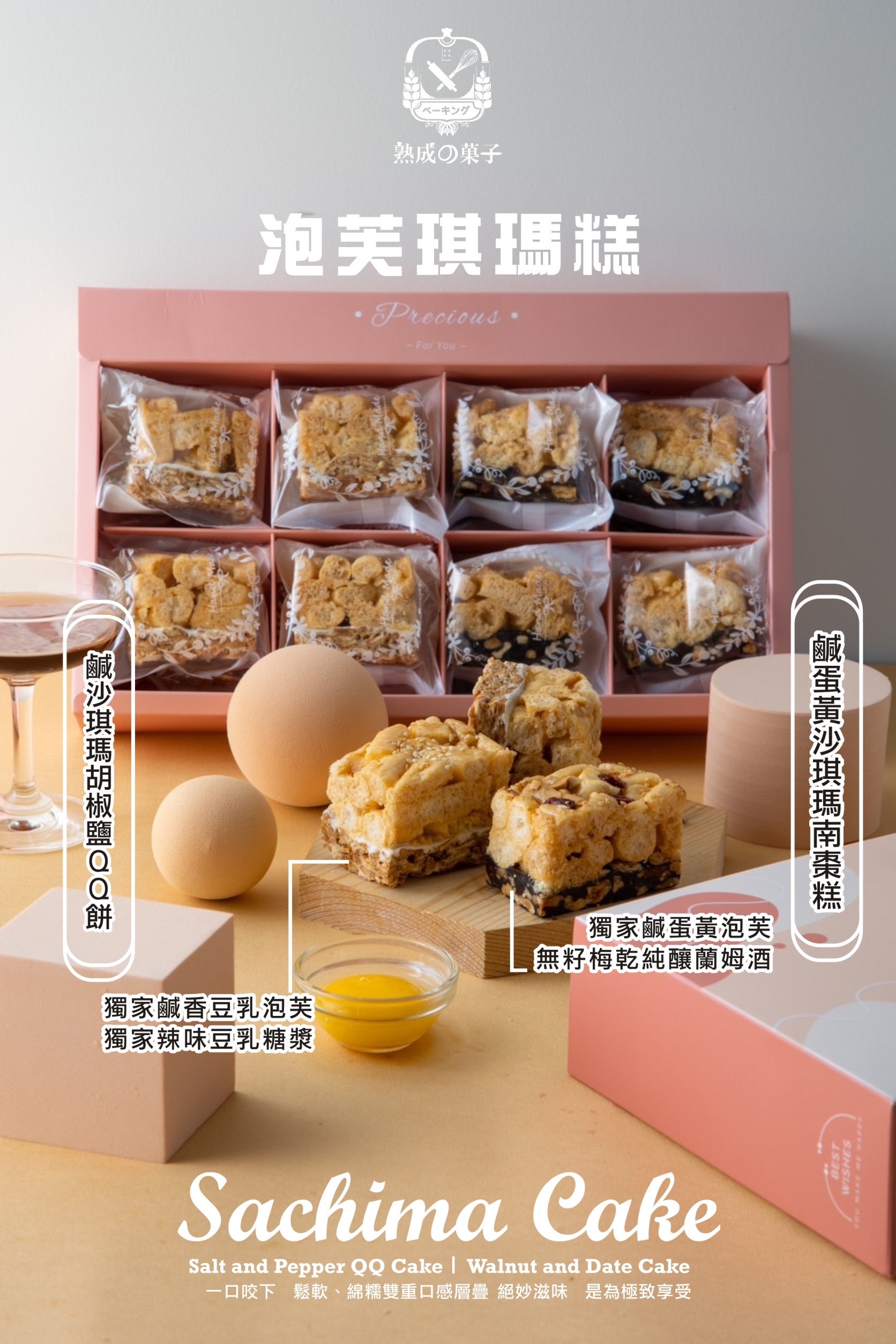 鬆軟的沙琪瑪,配上獨家的無籽黑棗泥熬煮核桃糕,真的是前所未有的口感,另外加碼示範鹽胡椒口感的雪Q餅風味真的很搭!等你來學習喔⋯⋯